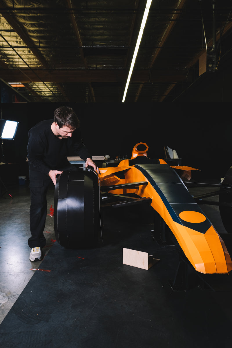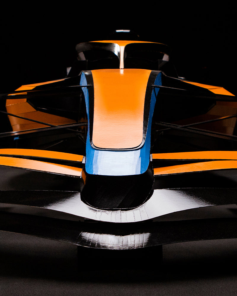For this project I was invited to do something I had been dreaming about for years: building a full-scale Formula 1 car entirely out of paper in collaboration with my favourite team, the McLaren Formula 1 Team, and VELO’s Love The Unexpected campaign.