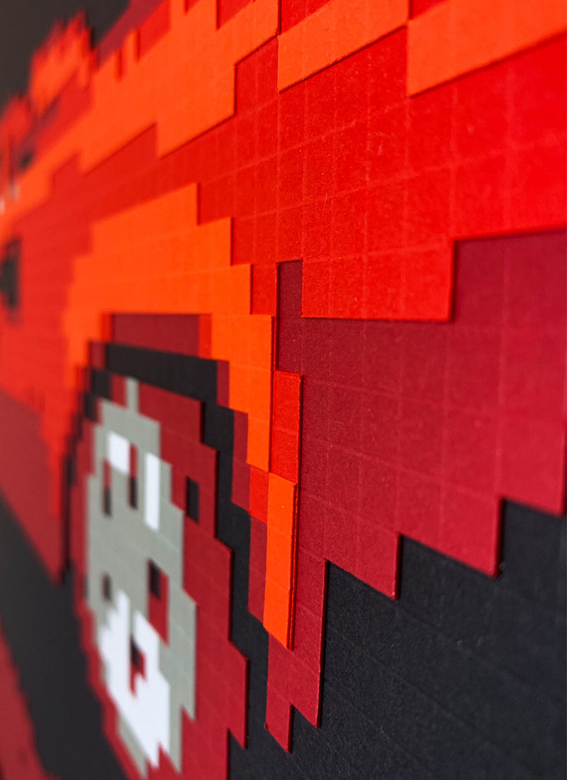 Paper sculptures that break cars into pixel-like blocks and stepped surfaces – blending the language of digital images with the tactile reality of hand-built paper.